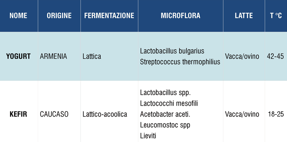 Il Prof. Paolo Polidori dell’Università di Camerino ci spiega in una tabella di sintesi (tabella 1), le sostanziali differenze tra yogurt e kefir.